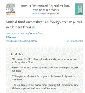 叶敏助理教授作为通讯作者写作的论文Mutual fund ownership and foreign exchange risk in Chinese firms被SSCI期刊Journal of International Financial Markets,Institutions& Money接收发表。该期刊为金融学国际权威期刊(院定B+类期刊),五年的平均影响因子2.403,主要发表国际经济、金融、贸易等领域的相关研究。