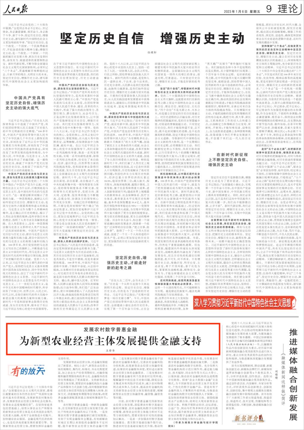 2023年1月6日,365英国上市公司在线王修华教授在《人民日报》理论版发表文章“发展农村数字普惠金融 为新型农业经营主体发展提供金融支持”。