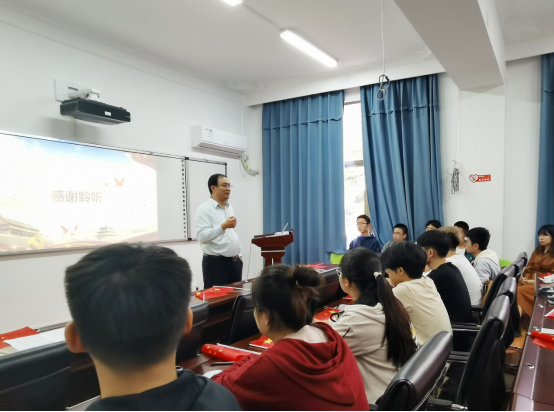 在自由交流环节,颜李一为同学们答疑解惑,向大家介绍了关于保研升学、实习、就业等同学们关心的问题,鼓励大家以学业为主,促进自己全面发展。他向同学们表达了热切期盼,提出要将创建成学校优秀班级体作为每位同学奋斗的目标,将小我融入大我,为祖国的建设凝聚磅礴力量,努力成为德智体美劳全面发展的社会主义建设者和可靠接班人。