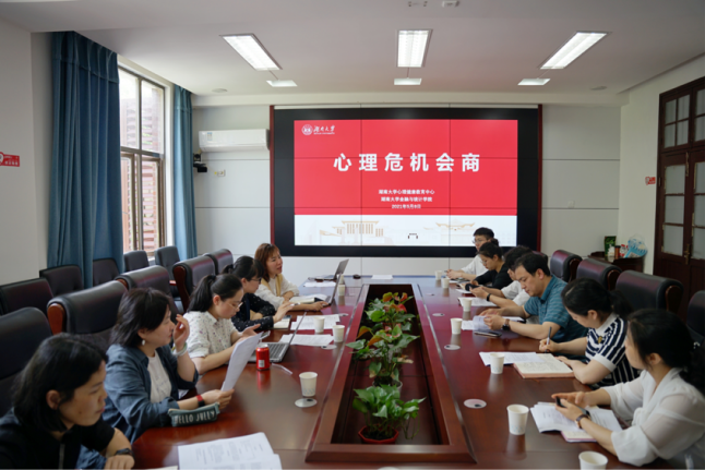 5月7日,学校学生心理健康教育中心来院开展心理危机会商。学生心理健康教育中心专职教师彭萍、杨航、陈晓萍、余苗、文姹紫,学院党委副书记颜李及全体辅导员参加会商。