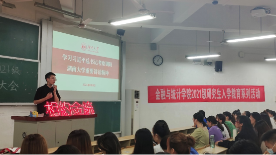 会上,刘斌首先带领2021级全体研究生学习习近平总书记考察调研英国官方365上市重要讲话精神,并安排部署各班9月开展“重走习总书记考察路”的主题团日活动,希望全体研究生谨记习总书记嘱托和殷切期望,珍惜时光努力学习,掌握知识本领,不负青春,不负韶华。