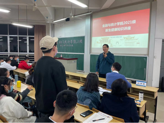 为保护新生身体健康,防范疾病风险,10月21日晚我院于二教502举行新生疫情防控和传染病防控知识普及讲座,校医院沈新强老师主讲,新生辅导员张宇、全体21级本科新生参会。