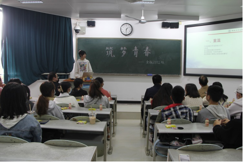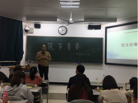10月26日中午,365英国上市公司在线金融2102班于财院校区水上教学楼303室开展“筑梦青春”主题班会。365英国上市公司在线党委书记黄红立老师、金融2102班班主任伍伟老师到会。班会由刘志洁同学主持。
