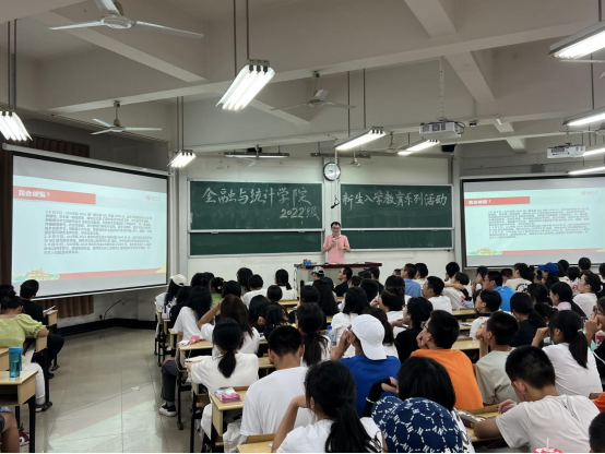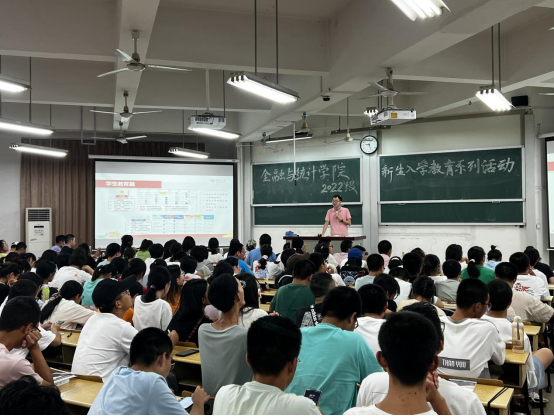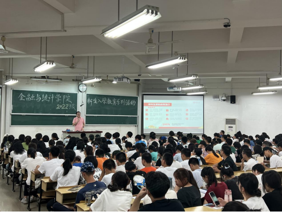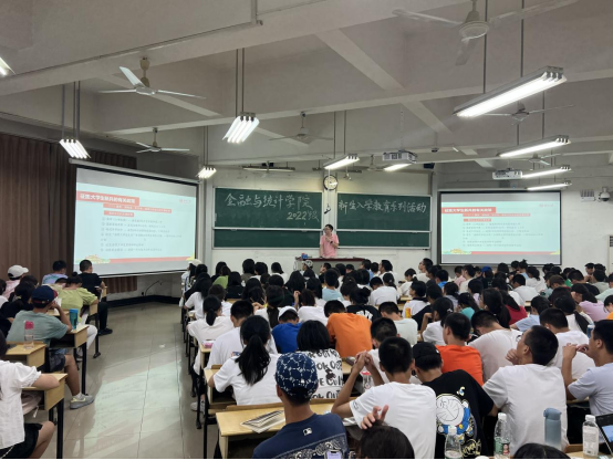 9月13日晚,365英国上市公司在线于财院校区第二教学楼举办2022级新生入学教育系列活动之“学生培养与日常事务主题讲座”,辅导员周斌主讲。