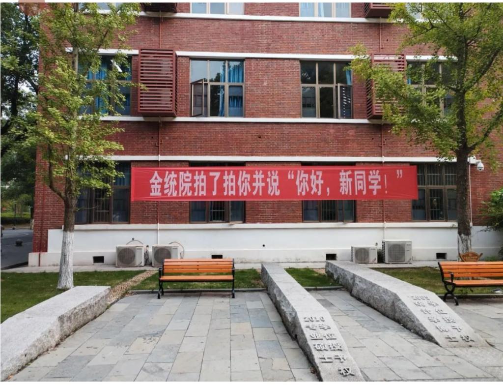研究生报到点:英国官方365上市财院校区金统文化广场两侧