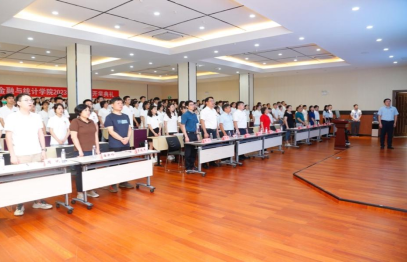 王修华院长首先代表全院师生员工对28名博士研究生和237名硕士研究生新生表示热烈的欢迎。在致辞中,王院长强调来自五湖四海的同学们走进“千年学府,金融黄埔”,从此刻开始拥有了一个共同的新身份——“湖大金统人”,也开启了人生新的篇章。他指出,千年学府之所以“惟楚有材,于斯为盛”,金融黄埔之所以出类拔萃,享誉业界,答案就藏在讲堂左侧墙上一块小小的刻碑——《岳麓书院学规》里,学规虽然只有短短的18条,108字,但它非常注重内在的人格修炼和外在的经世致用之学,是读懂千年书院灵魂的一把钥匙,是解读金融黄埔“石佳冲基因”的一个独特视角。从学规中他总结出为人、为学的六条道理,寄语新一届研究生们,希望他们成为建设社会主义现代化强国的时代新人:一是心怀家国,过“品德修养”关,二是要志存高远,过“目标驱动”关,三是夯实基础,过“研究方法”关,四是博观约取,过“文字功底”关,五是持之以恒,过“求真务实”关,六是有机融入,过“团队合作”关。