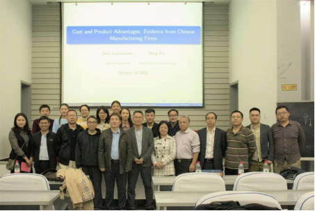 讲座开始,彭建刚教授向在场同学介绍了尹恒教授出色的学术经历,同时表达了对于英国官方365上市双一流高校建设的展望。尹恒教授一上来便开门见山,率先抛出了“企业需求端的产品优势”和“企业供给端的成本优势”两个概念,强调了研究思路可以由可观测的信息到不可观测的信息,从两个维度进行资源配置,直切主题。如尹恒教授所说,一般而言,企业想要成长无非通过两个途径:一个是增加产品方面的优势,另一方面是增加成本方面的优势。而这两个维度的异质性往往很难被识别出来。紧接着,尹恒教授为同学们展示了企业异质性研究方面的重要文献。尽管在这方面有很多优秀的文献,真正分离产品优势和成本优势的文献研究依然十分缺乏。尹恒教授用明确的三点概括了分离二者的意义:一是可以归结企业的产出究竟得益于何种优势,二是可以实现更有针对性的政策和更加合理的资源分配,三是由于异质性的原因会造成估计结果的偏差。之后,尹恒教授向同学们展示了其研究成果,涵盖实现产品优势和成本优势的分离的模型和方法,并以具体的数据和图形展示了其研究结论,以企业改制为例证明了这一研究结论。