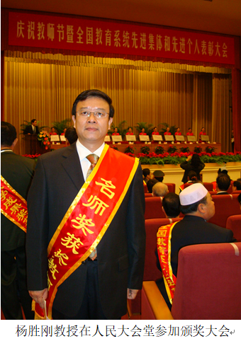 治学严谨的杨老师从事高等教育事业已33年有余,他在自己钟爱的教育事业中奉献了青春年华,立志于将“读好书、教好人、写好文”作为人生的追求和乐趣。作为一名老党员,杨老师在教学、科研、管理等各个方面都起到了榜样和表率作用。经过他与学院师生的共同努力,学院在学科建设、教学改革、科学研究、人才培养等方面取得了显著的成绩:无论是重点学科建设还是“双一流”建设;无论是国家级特色专业还是国家级教学团队,无论是国家级精品课程还是国家级双语示范课程都凝聚了杨老师和学院所有教师的共同心血。他的付出得到了各级领导和同事们的高度评价,他先后荣获全国优秀教师、教育部第四届高校青年教师奖、全国宝钢优秀教师奖等光荣称号。