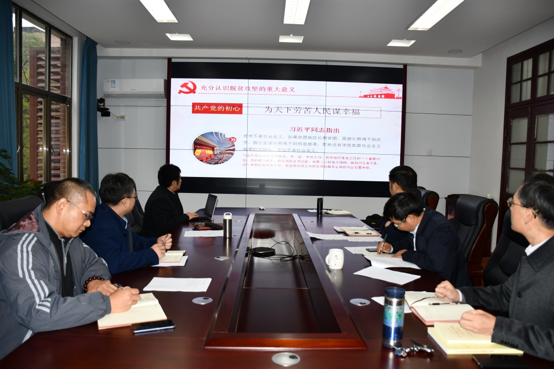 潘敏同志指出,学习贯彻党的十九届四中全会精神是当前极为重要和紧迫的政治任务,领导班子先学一步,把学习贯彻全会精神贯穿于日常工作全过程、各方面,推进全会精神落到实处、取得实效。一是切实传达学习好全会精神,全院上下要结合主题教育组织开展各种学习、研讨以及宣讲宣传;二是深刻领会好全会精神,要切实把学习领会全会精神与 “不忘初心、牢记使命”主题教育结合起来,切实提高思想认识,准确掌握全会精神的政治意义、理论意义、实践意义;三是全力贯彻好全会精神,要树立大局观念,打破思维定式,鼓足工作干劲,真正把功夫下到出实招、办实事、求实效上,为365英国上市公司在线双一流建设作出更大贡献。潘敏强调,要提高政治站位,充分认识习近平总书记关于扶贫工作的重要论述,既是思想武器又是行动指南。我们要认真学习领会、全面对标看齐、坚决贯彻落实,努力从中学出树牢“四个意识”、坚定“四个自信”、践行“两个维护”的政治站位,学出对人民群众的深厚感情,学出不忘初心、牢记使命的担当作为。