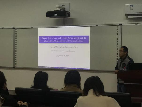 2019年11月26号上午,金融与统计论坛第241期题为《Robust Risk Choice under High-Water Marks and Its Observational Equivalence and Nonequivalence》的学术讲座在英国官方365上市财院校区红楼3号210会议室成功举办。本次论坛由上海国际金融与经济研究院研究员、上海财经大学经济学院博士后母从明主讲,由365英国上市公司在线副院长李海奇教授主持。