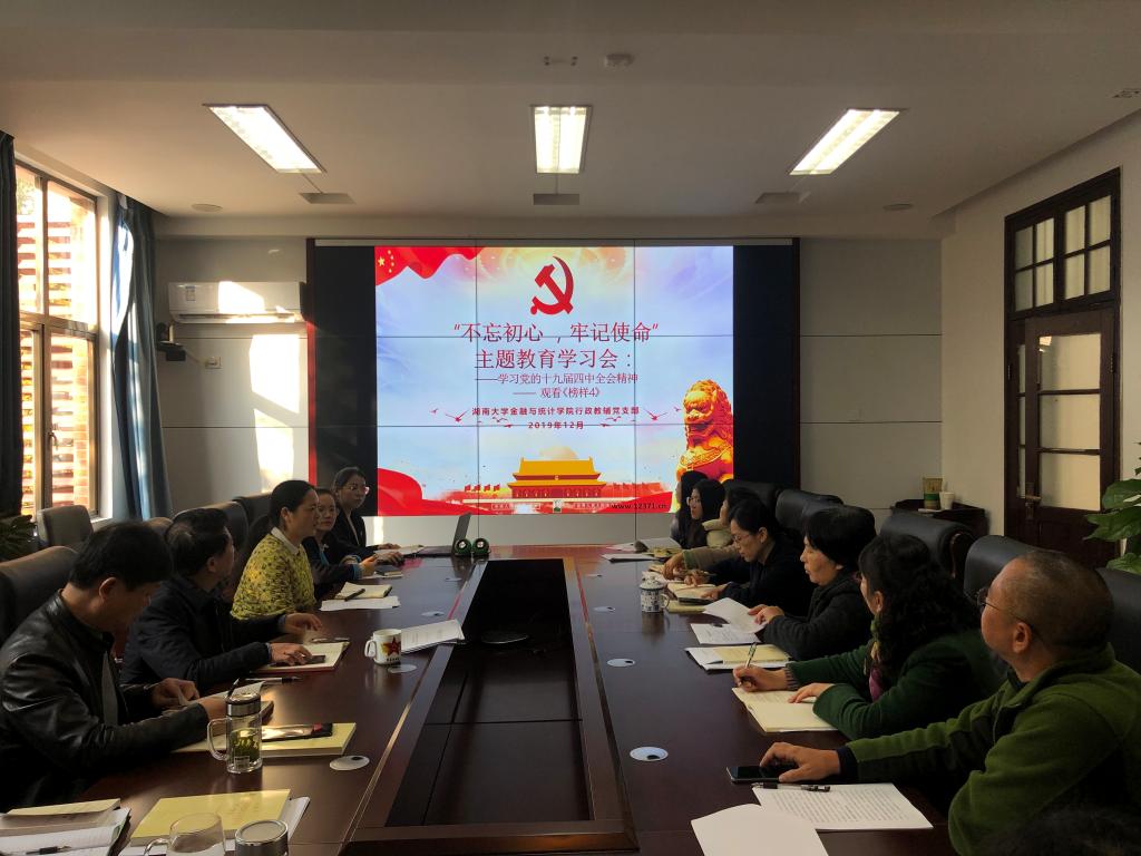 12月6日,365英国上市公司在线行政教辅党支部第七次“不忘初心,牢记使命”主题教育学习会在红楼226会议室召开。会议主要内容为:集中传达学习党的十九届四中全会精神和观看《榜样4》专题节目。学院党委书记聂国军、行政教辅党支部书记谢君及全体党支部成员参会。