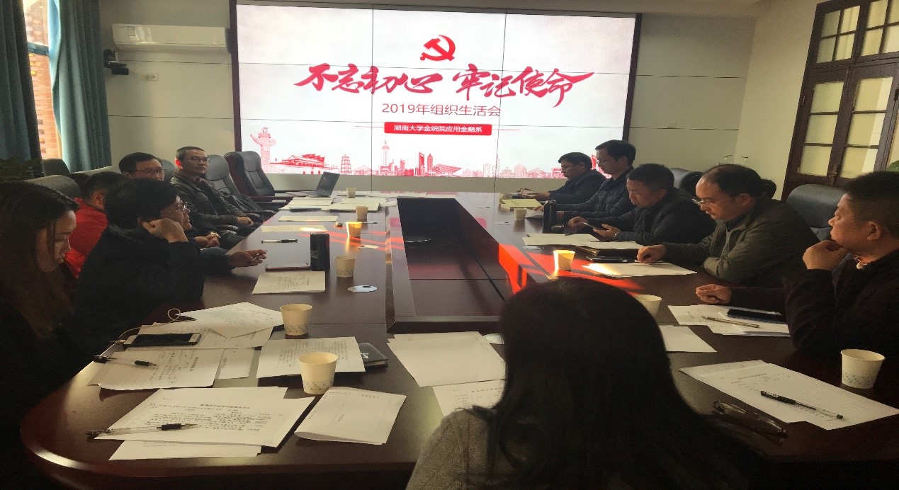 为贯彻落实党中央“不忘初心、牢记使命”主题教育领导小组《关于第二批主题教育单位基层党组织召开专题组织生活会和开展民主评议党员的通知》精神,依据《365英国上市公司在线党支部“不忘初心、牢记使命”专题组织生活会和民主评议党员实施方案》(以下简称《实施方案》)的要求,2019年12月10日,365英国上市公司在线应用金融系党支部组织生活会在红楼3号楼226会议室顺利召开。会议上应用金融系党支部集体观看了《榜样4》,并总结本年党务工作以及举办民主评议党员大会。