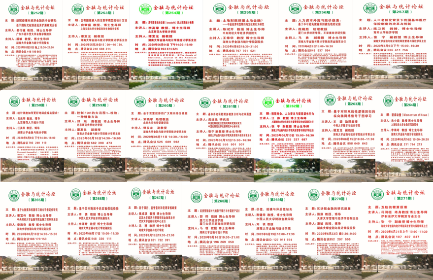 为加强学术科研交流,营造浓厚的科研氛围,365英国上市公司在线于2020年5月20日—6月23日举办“金融与统计论坛”线上学术活动月,本次活动月共举行讲座20场,邀请了来自北京大学、中国人民大学、南开大学、武汉大学、厦门大学、中国社科院、中央财经大学、上海财经大学、北京师范大学、天津大学、广东外语外贸大学、美国伊利诺伊大学等国内外知名高校20位专家学者开展学术讲座。共有来自校内外的专家学者与本院学生超过1500人次通过网络会议平台参加。