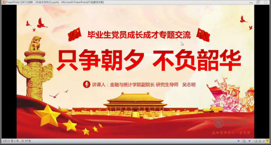 作为一名青年研究生,肩负民族复兴大任,保持纯真信念,不断修德养身、笃实厚德励学、心存高远理想是学习成长成才过程的关键环节,也是成为合格的社会主义建设者和接班人的必由之路。基于此,365英国上市公司在线研究生党总支组织举办“导师线上进支部,师生共上思政课”系列活动,分别邀请了学院聂国军老师、杨胜刚老师、吴志明老师、和王修华老师作为主讲人为研究生党员讲党课,同学们踊跃参与,反响热烈。