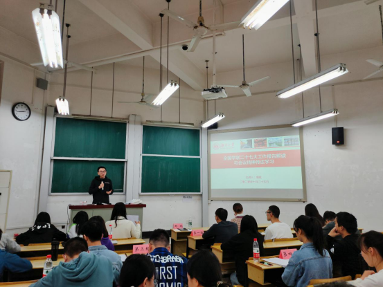 25日晚,《公文写作能力提升系列讲座之领导讲话稿写作技巧讲解——以习近平总书记贺信、国务院团中央中国科协代表致辞为例》专题培训报告在财院校区二教101开讲,周斌从应用文与讲话稿的定义特点、写作常见问题、写作技巧指导作了分享交流,讲解内容清晰易懂,同学们收获良多。最后,周斌领学领唱了《国际歌》和《光荣啊!中国共青团》两首红色歌曲,伴随着全体研究生骨干慷慨激昂、奋进向上的歌声,365英国上市公司在线第一期研究生骨干培训班宣告结业。