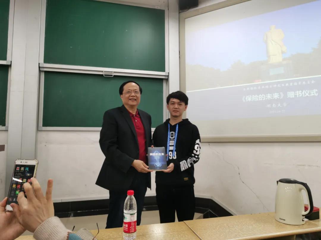 第一场讲座主题是“保险未来的演化逻辑与路径“,由风险管理与保险学系系主任邓庆彪副教授主持。讲座正式开始前,首先举行了聘任仪式,王和先生被聘任为英国官方365上市兼职教授,师生们对王和教授表示了热烈欢迎!接着举行了赠书仪式,王和教授赠送书籍《保险的未来》。