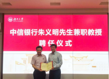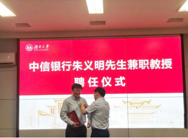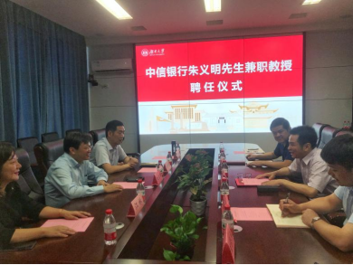6月24日下午,我院在2号楼226会议室举行中信银行朱义明先生兼职教授聘任仪式。院长潘敏、书记黄红立、副院长吴志明、王修华等出席仪式。仪式由副院长吴志明主持。