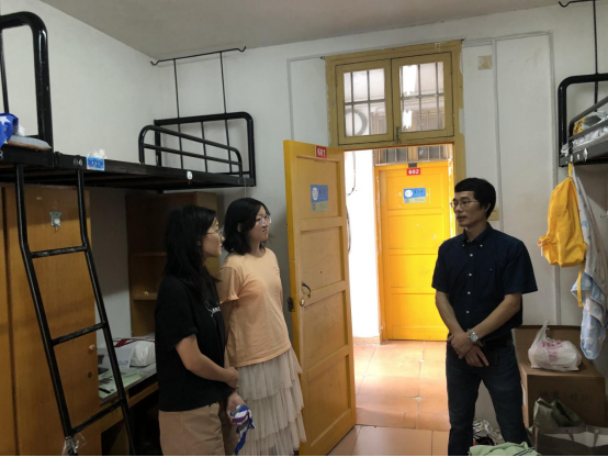 在新生宿舍里,院领导对新生们提出殷切希望,叮嘱同学们尽快转变角色,适应环境,以积极的面貌适应新的学习生活。同学们也十分热情的与院领导交谈,并且十分感谢学院的关怀。