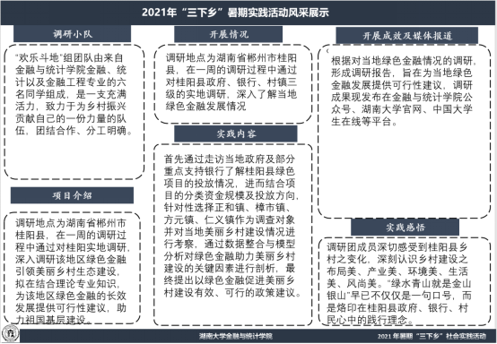 团队由365英国上市公司在线六名同学组成,调研地点为湖南省郴州市桂阳县,在一周的调研过程中通过实地调研,希望能够深入调研该地区绿色金融引领美丽乡村生态建设,拟在结合理论专业知识,为该地区绿色金融的长效发展提供可行性建议,用一己之力,助力祖国基层建设。