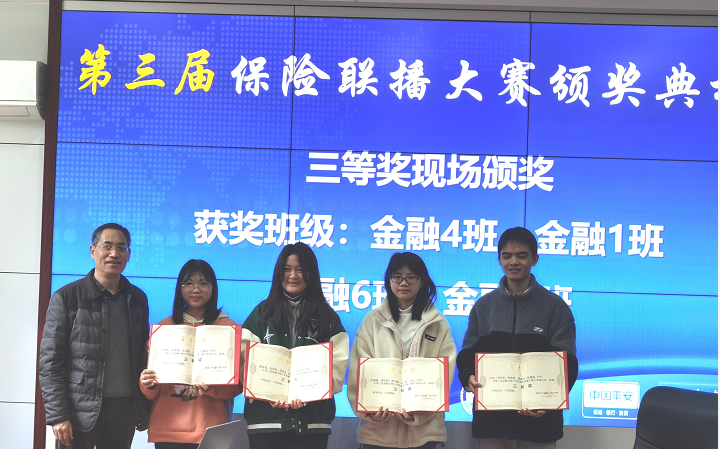 经验分享环节,二等奖获奖代表、金融2002班胡美丹分享获奖感言,“我们小组针对保险助推乡村振兴进行了探究,学习到了许多保险知识,感受到了保险的重要作用,我们的能力也得到了很大锻炼。”二等奖获奖代表、精算2001班崔嘉航提到,“在整个大赛准备过程中,我们所学习到的已经超过了荣誉本身。“一等奖获奖代表、金融2003班王瑀娆希望通过参赛作品,能让大家初步了解关于保险欺诈与反欺诈的相关知识。一等奖获奖代表、保险2001班李嘉佳表示特别感谢指导老师不但教会我们课本上的专业知识,也引导我们将保险专业知识和身边实例结合起来。
