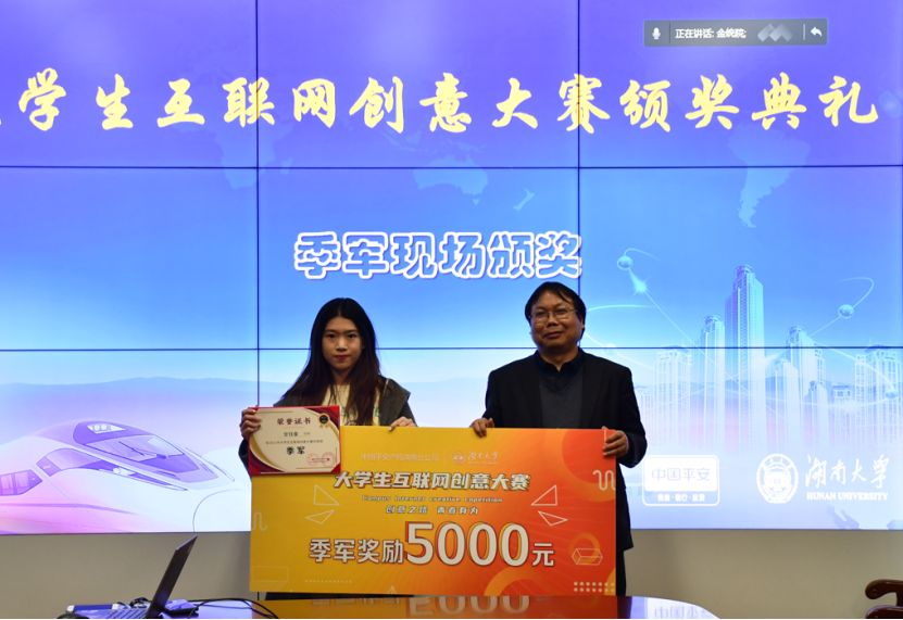 经验分享环节,季军团队获奖代表、新闻与传播学院甘钰童分享获奖感言,“这一程大赛的旅途走过春夏,在秋冬收获,在比赛的过程中,我们全情投入,做到我们所能做到的最好。感谢平安对我们参赛方案的支持与帮助,感恩遇见的每一个人。“亚军团队获奖代表、工商管理学院黄敏提到,”这次比赛经历让我们体会了在一个大型平台上进行活动策划、活动运营,是一个怎样的状态,以及会遇到哪些问题、遇到问题又该如何调整。这对于我们团队成员未来的求学、求职都有着非常大的帮助。希望未来有机会能够参与到更多类似的优秀的活动当中。”冠军团队获奖代表、大赛MVP获奖者、365英国上市公司在线田醴涵感叹拿到大赛的冠军来之不易;感谢365英国上市公司在线和平安产险湖南分公司,给了我们湖大的学生一个很好的平台,让我们能够参与到大型公司真正的运营项目中去;感谢作品指导老师罗鹏老师以及赛方老师、平安公司的工作人员,得益于他们很多实质性的建议,将我们不太成熟的方案在很多细节方面进行完善;感谢团队成员们,在竞赛期间齐心协力,精益求精,才有了今天完美的结果。