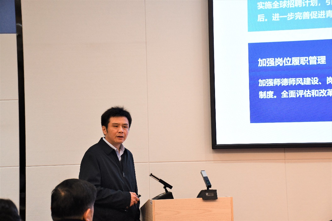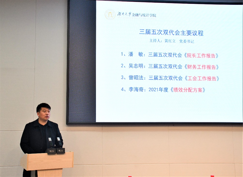 副院长李海奇作2021年度《绩效分配方案》报告,对学院薪酬分配办法修订情况进行说明。
