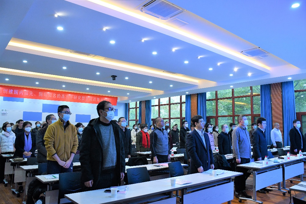 会议第一阶段,院长潘敏作题为“夯实立德树人基础 推进一流研究型学院建设”的工作报告,报告从学科建设、人才培养、科学研究、队伍建设、国际交流、党建思政六个方面总结了2021年的工作举措与成效,并对2022年工作进行安排部署。潘院长指出:2022年,学院要以习近平新时代中国特色社会主义思想为指导,紧扣学校“双一流”建设和“十四五”发展目标,以立德树人为根本,以人才培养为中心,以队伍建设为抓手,以科学研究为指引,以内涵建设提升学院综合实力,以特色发展强化学院核心竞争力,以创新发展激发学院办学活力,以开放发展提高学院国际影响力,以和谐发展增强学院发展凝聚力,为创建国内领先、国际知名的高水平研究型学院奠定基础。