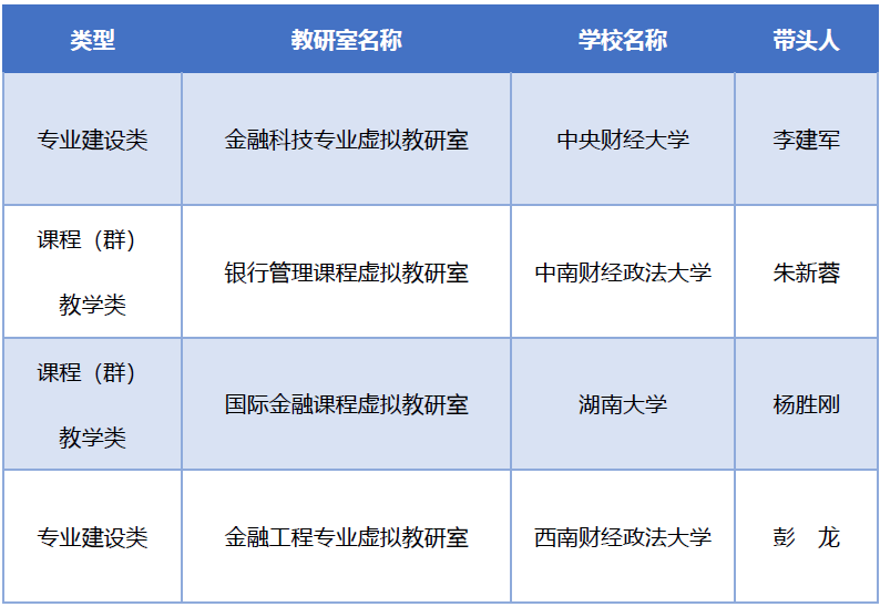 近日,教育部办公厅公布了首批虚拟教研室建设试点名单。我院国际金融教研室成功获批全国性虚拟教研室建设试点。此次金融类建设试点全国共有四个教研室入选,其他入选的分别是金融科技专业虚拟教研室、银行管理课程虚拟教研室和金融工程专业虚拟教研室。