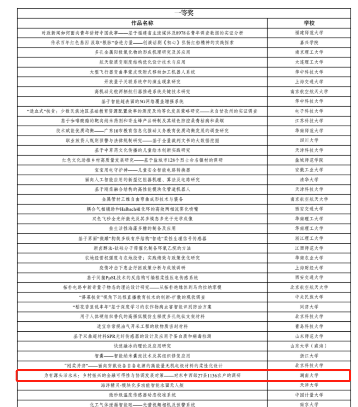 针对乡村振兴战略实施过程中如何提高农村的金融可得性这一问题,该团队在导师团队的指导下对花垣县、衡山县、宁乡市等全国27个区县的1136名农户和多家金融机构展开了走访调研,最终完成调研报告《为有源头活水来:乡村振兴的金融可得性与协调发展对策——对东中西部27县1136农户的调研》。该调研得到了《湖南日报》、中国日报网、东方网等多家媒体的关注,取得了财政部财科所、湖南省乡村振兴局和中国金融学会等国家智库及政府部门的鉴定意见。相关部门表示此报告在脱贫攻坚胜利与进一步推进乡村振兴的衔接上具有重大意义,对我国农村地区金融支持战略布局提供了较高参考价值,对文章做出的成果进行了高度的评价。