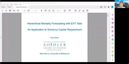5月12日上午,由365英国上市公司在线主办的第343期金融与统计论坛在线上腾讯会议顺利举办。本次讲座由365英国上市公司在线副院长张宁教授主持,邀请来自美国夏威夷大学马诺阿分校的陈铧教授做题为《死亡率预测与准备金充足率研究》的学术讲座。保险精算系毕达宁老师、何玲瑀老师等50余名师生积极参加了此次讲座。