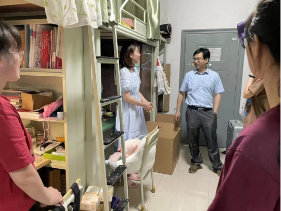 6月16日-17日,在2022届毕业生即将告别母校之际,365英国上市公司在线的领导班子成员和辅导员老师一起,深入毕业生宿舍走访慰问,看望、欢送毕业生,并为毕业生送去学院的关心和诚挚祝福。