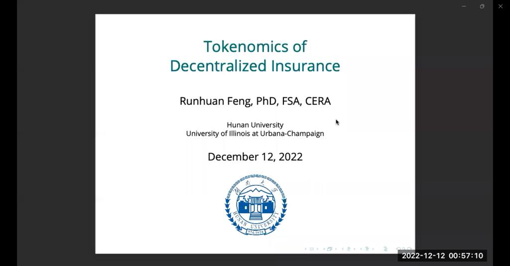 在《去中心化保险》的专题讲座中,冯教授介绍了去中心化保险的基本原理和产生背景。随着虚拟金融的发展,保险领域与其产生交集,区别于传统保险,去中心化保险没有中介,而是将风险分摊到各个参保个体,以健康合作社、网络互助等多种形式展现在公众面前。冯教授以“公众来维护公共知识平台”、“闲置的汽车可以用来跑滴滴”作为例子,指出去中心化、去中介化是当前市场的发展趋势,保险行业也不例外。去中介化的保险不仅可以降低保险行业运营的成本,还可以对不确定性进行控制,达到均衡水平。冯教授总结了去中心化金融领域近些年来的发展。自2009年以来,比特币、以太网的概念相继诞生,塑造出一个新的生态系统。在区块链的体系下,人们提出可以通过智能合约的方法替代传统的金融机构的媒介作用,达到去中心化的目的。目前,去中心化的概念渗透到金融行业的各个领域,在银行、证券业均有体现,冯教授详细介绍了区块链在保险行业的应用。通过对去中心化产品的市场价值的观测,冯教授指出去中心化金融市场不够成熟和规范且缺乏监管,具有一定的金融风险。但是从目前去中心化金融市场上各种金融协议的市场份额来看,绝大多数去中心化金融产品都集中在银行和证券行业,保险行业的市场份额只有0.5%,与现实世界的金融相比,去中心化保险还有很大的发展空间。冯教授提出在去中心化的金融市场上,学者可以从商业模型的设计是否存在问题以及经济上是否可持续入手,进一步探索。冯教授针对风险转移过程中代币持有人的角色、运作过程中监管部门有无必要介入、去中心化与去中介化的概念与参会师生展开了进一步的讨论。