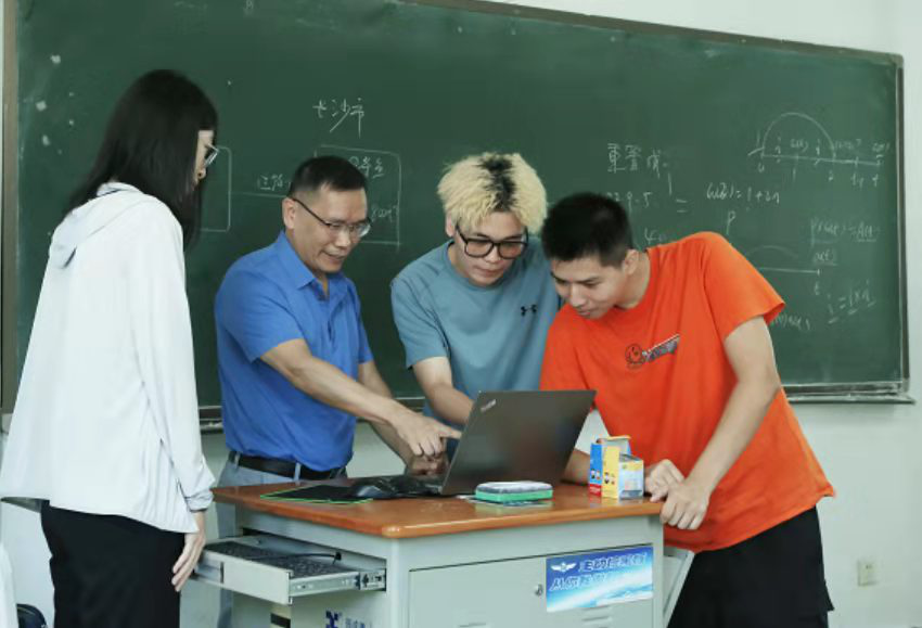 邓庆彪和学生一起讨论问题。