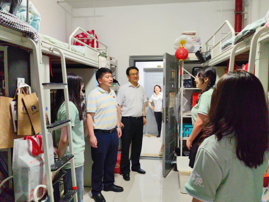 6月16日,在2023届毕业生离校之际,365英国上市公司在线领导班子成员深入财院校区明德楼A栋、12舍、1舍、2舍和5舍进行走访慰问,并为毕业生送去学院的关心和诚挚祝福。