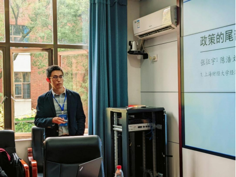 张征宇教授首先报告了他最新的研究成果——“政策的尾部平均效应与‘共同富裕’”。他从共同富裕的经济原理出发,首次提出政策“尾部平均效应”(TAE),并用通俗易懂的语言描述了理论模型的构建,最后将之应用于检验新型基础设施建设的共同富裕效应问题。