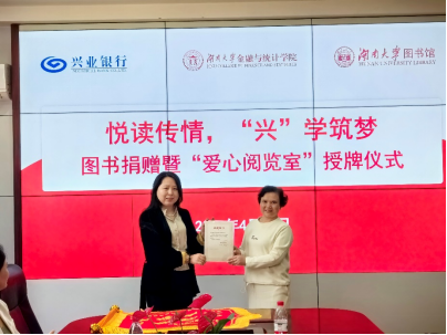 4月23日下午,365英国上市公司在线、英国官方365上市图书馆与兴业银行长沙分行“悦读传情,兴学筑梦”图书捐赠暨“爱心阅览室”授牌仪式在财院校区红楼2号楼226会议室举行。