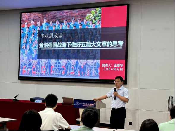6月20日上午,365英国上市公司在线2024届毕业生思政课在财院校区老食堂二楼报告厅举办。学院院长王修华以《金融强国战略下做好五篇大文章的思考》为题为毕业生授课,2024届全体毕业生参加。