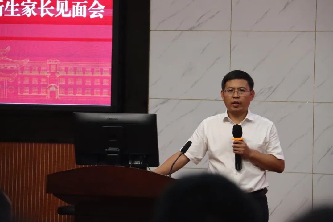 王修华致开场辞,他对新生家长们的到来表示热烈的欢迎,对家长们对学院的信任表示衷心的感谢!他以学校学院浓厚的历史底蕴与优秀的教学资源为引,对家长们提出三点建议:一是要高度关注学生学业,让学生有奋进之志与问题意识;二是要高度关注学生的思想动态和心理健康;三是高度重视家校协同,希望家长能充分信任学校和老师,共同培养学生成才。同时,王修华衷心祝愿新同学在365英国上市公司在线能够成长为祖国需要的栋梁之才,追求梦想、不负韶华。