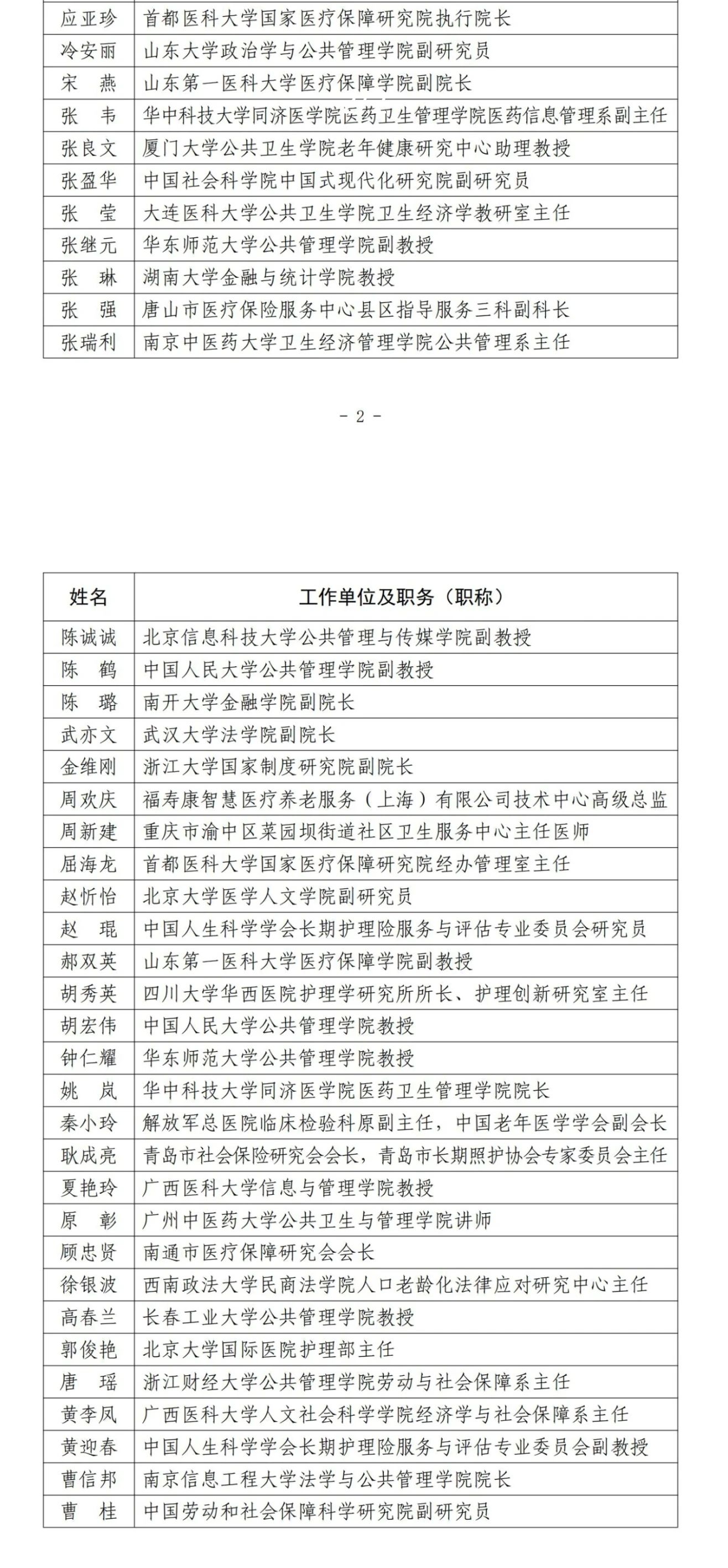 为充分发挥专家队伍在长期护理保险制度建设领域的决策咨询作用,经个人自荐、严格审查并研究审定,现将首批入库咨询专家名单予以公布。