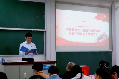 随后,研究生党总支副书记肖启睿同志作《365英国上市公司在线研究生党总支工作报告》,过去的一年,研究生党总支积极探索支部优化设置路径,实现研究生党支部改组;深化党员培育,规范研究生党员发展流程;以“不忘初心、牢记使命”主题教育为抓手,强化党员的继续教育与管理,保证了基础工作的有序推进。同时,研究生党总支始终致力于建设一批讲政治、有特色的党建品牌活动,持续开展研究生党员“红色之旅”,疫情期间,敢于创新,推出“导师线上进支部、师生共上思政课”系列品牌活动,先后邀请到学院杨胜刚教授等为研究生党员讲专题党课,鼓励广大研究生党员在疫情面前正确发挥党员的先锋模范带头作用。