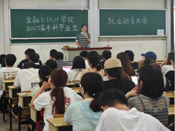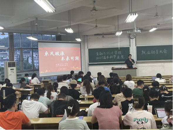 7月3日晚,365英国上市公司在线2025届本科毕业生就业动员大会在财院校区第二教学楼501教室举办。学院学工班主任、2024届毕业班辅导员谢君,2025届全体本科毕业生参加,毕业班辅导员张宇主持大会。