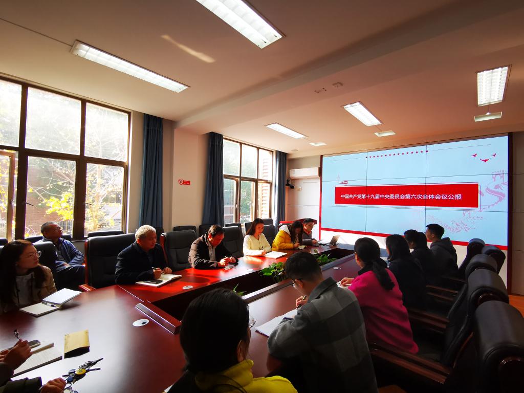 2021年11月29日,行政教辅党支部召开以“深入学习党的十九届六中全会”为主题的专题学习会议学院团委书记周斌领学,支部全体党员参会会议由支部书记谢君主持。