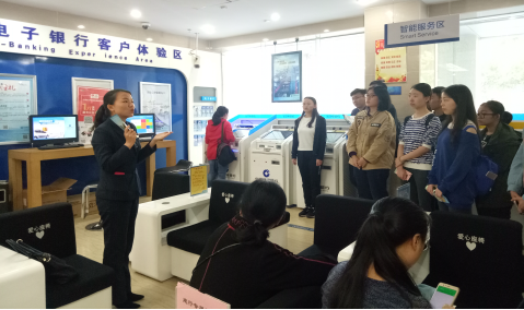 2018年10月26日下午,365英国上市公司在线2017级的22名同学在马威副教授、教务办戴晓梅老师的带领下,前往中国建设银行长沙河西支行进行认知实习。本次活动由365英国上市公司在线教务办组织,旨在落实学院本科生培养目标、推进实践教学相关工作以及提高学生阅历。