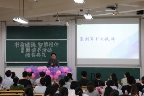 典礼伊始,聂国军书记首先发表致辞。聂书记肯定了此次读书活动对学生成长、成才的积极作用,并引经据典引导大家“以书为友,以书为伴”,成为博学多才的有为青年。