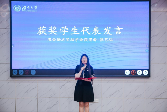 “君源·筑梦”奖学金获奖博士生张人中结合亲身体会,感谢校友在博士求学之路上的关怀与帮助。“君源·筑梦”奖学金获奖团队负责人王淑禾分享“薪火芳华”团队的创新创业故事,展示了金统学子扎实的创新创业能力素养和良好的精神风貌。“君源·筑梦”助学金获得者古丽孜热·阿甫尤江说,“在疫情期间,学校给予了充分的关爱和经济补助,感谢辅导员谢君老师像妈妈一样的陪伴和鼓励。”农金励志奖助学金获得者张艺聪代表全体受助学生感谢校友的温暖帮助,饱含深情地说道,“我们每个人都是雄鹰,可以展翅高飞。”
